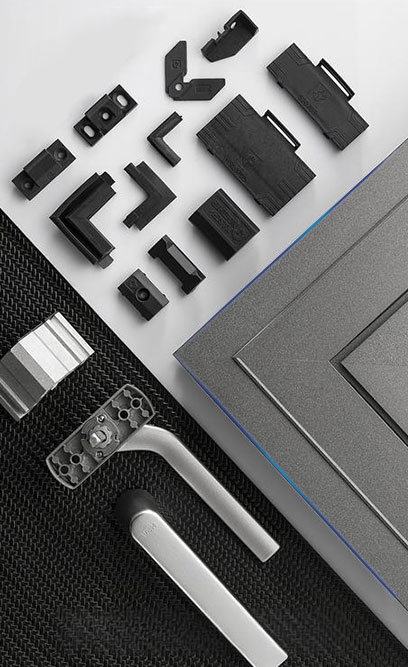 门窗拼装采用销钉组角+注胶工艺,增强门窗角强度,抵御外力冲击